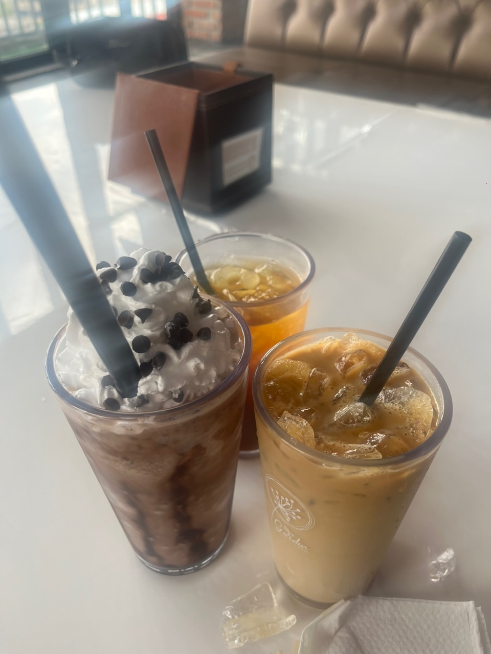 친구들과 카페에 가서, 아아, 카페라떼, 초콜릿라떼를 먹었습니다.