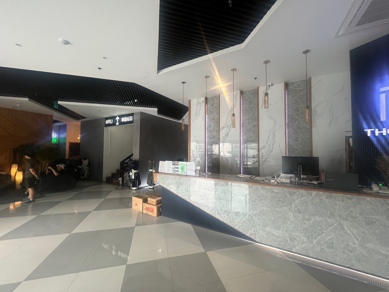 로비에는 항상 골프백들이 놓여져 있는 호텔입니다